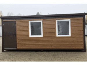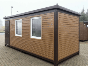 - Contenedor de oficina de diseño en madera de 6×2,40 metros y 2,70 metros de altura.