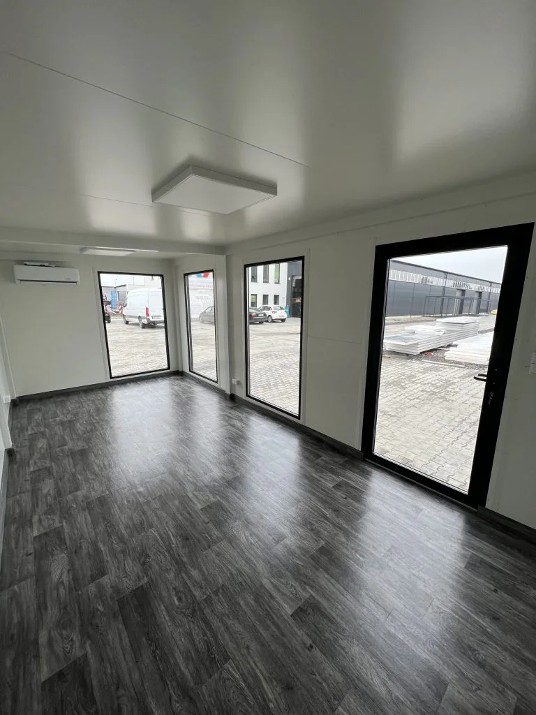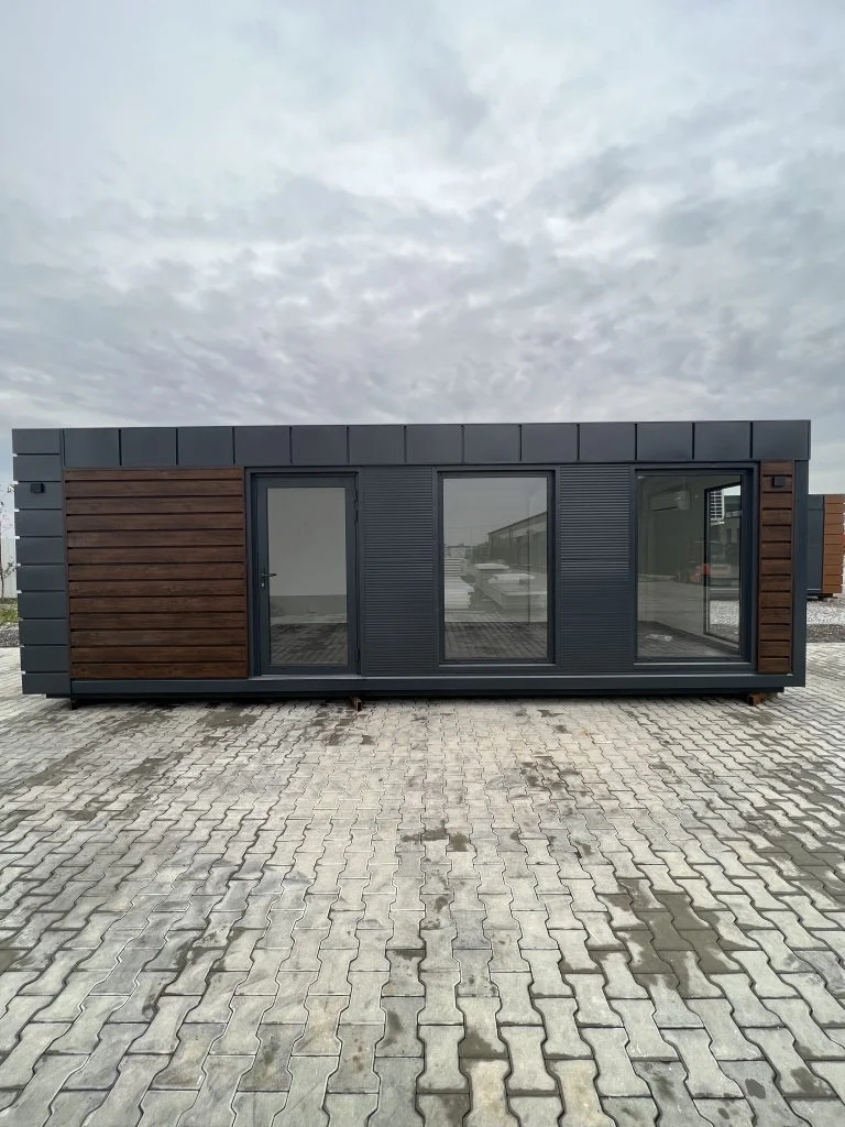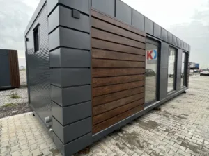 – Revestimiento frontal en antracita RAL 7016 con revestimiento en nogal